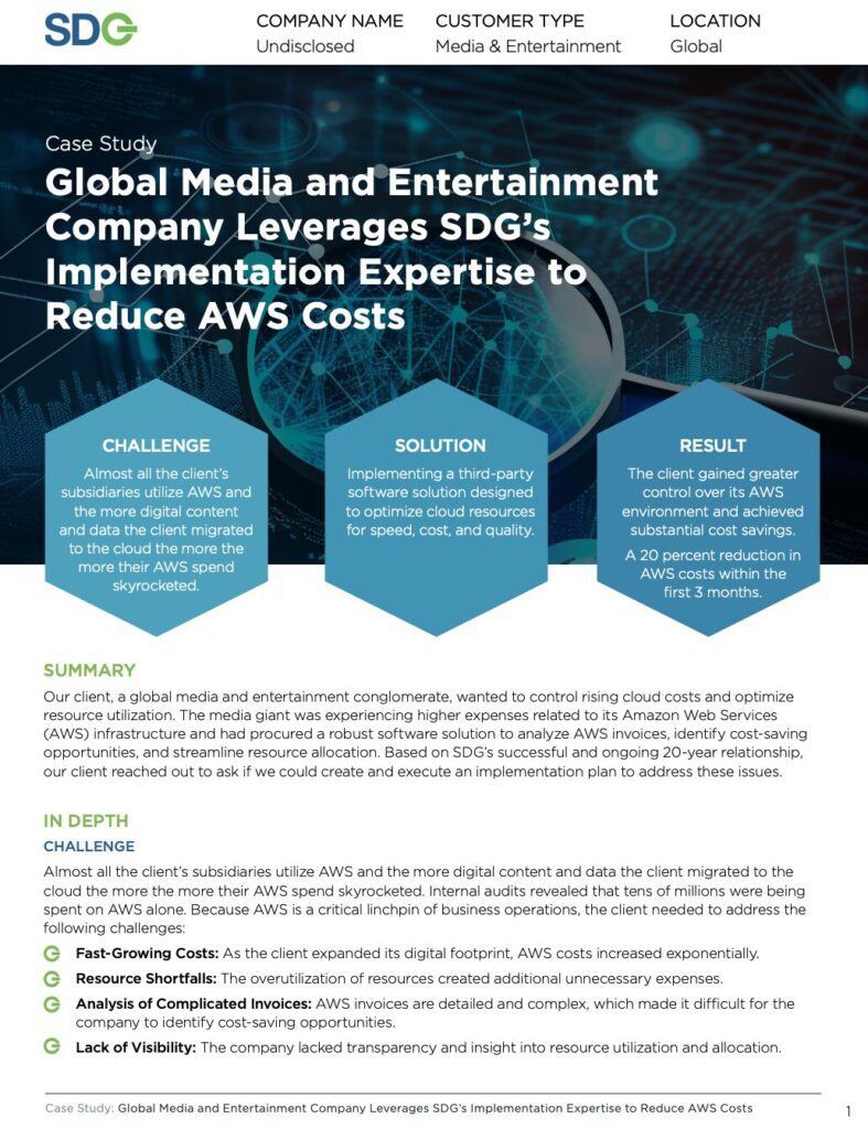 Global Media and Entertainment Company Leverages SDG’s Implementation Expertise to Reduce AWS Costs
