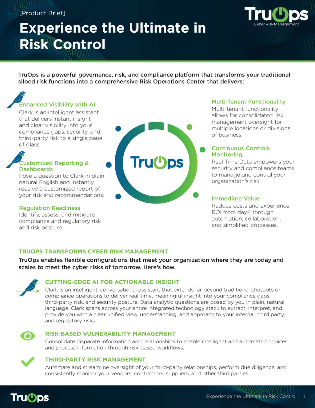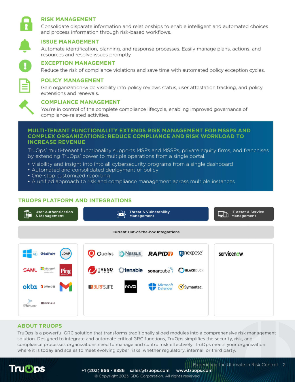 solution. Designed to integrate and automate critical GRC functions, TruOps simplifies the security, risk, and