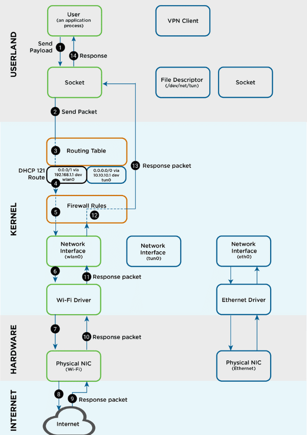 This manipulation is subtle enough that the VPN appears to be functioning normally to the user, maintaining the illusion of a secure, private connection while the traffic is actually being intercepted and potentially altered.